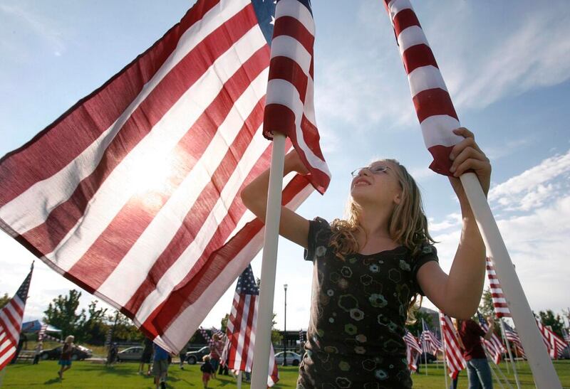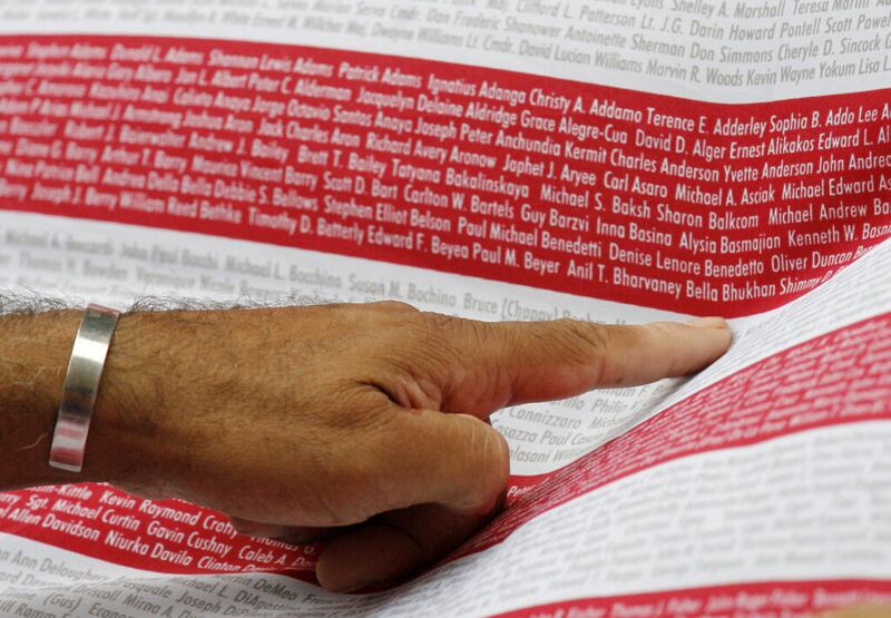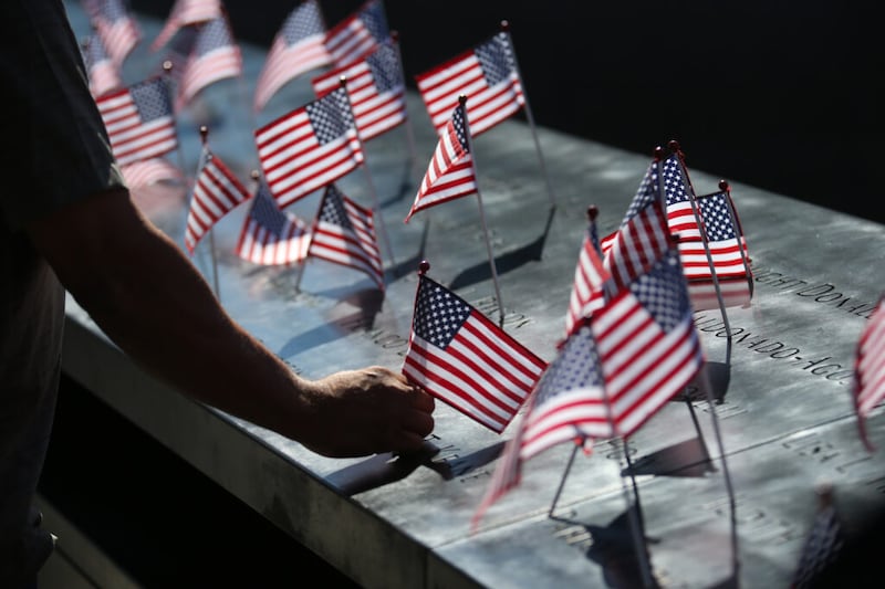 Al año siguiente, en el primer aniversario del 11 de septiembre, fui con mi madre a un monumento en una iglesia local. El césped estaba bordeado por casi 3.000 pequeñas banderas estadounidenses, que representaban a los muertos.