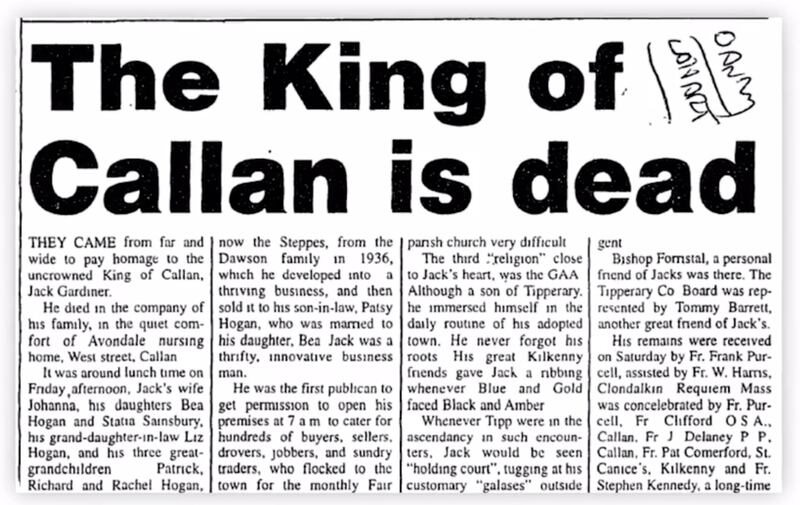 El impacto de Jack Gardiner fue mayor de lo que habían pensado inicialmente. Una foto del obituario de su bisabuelo ilustraba su influencia en la gente del pueblo. El titular decía: “El Rey de Callan ha Muerto”. El padre de Matthew y Michael comentó que Jack Gardiner era una persona muy afable.